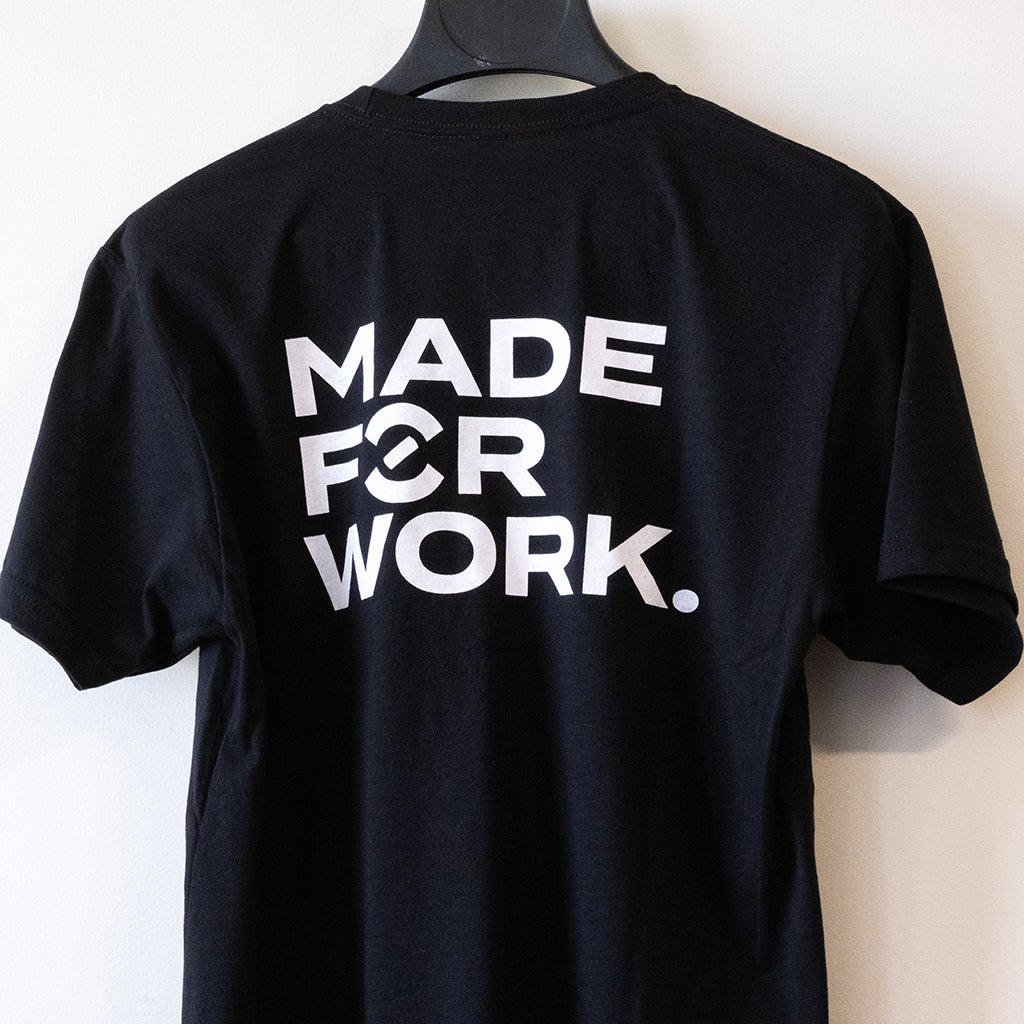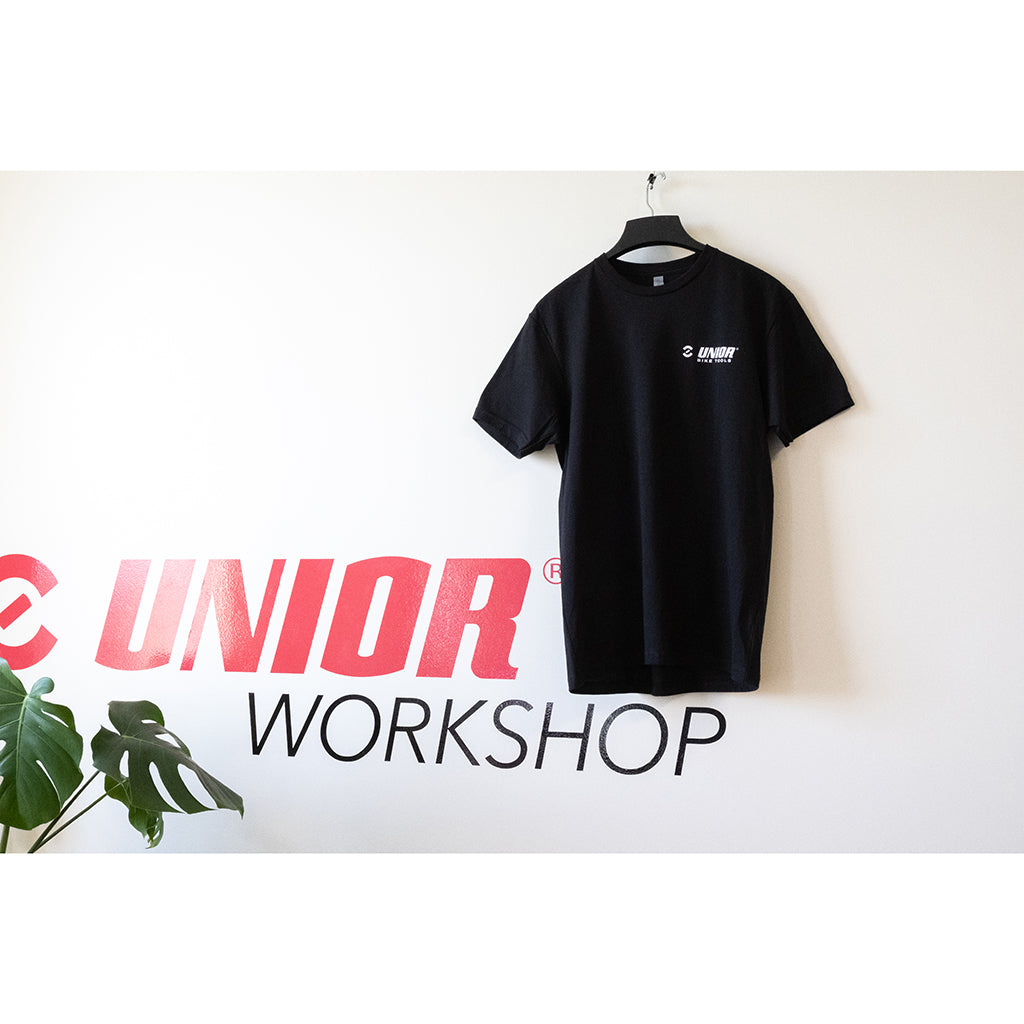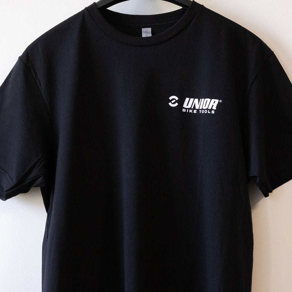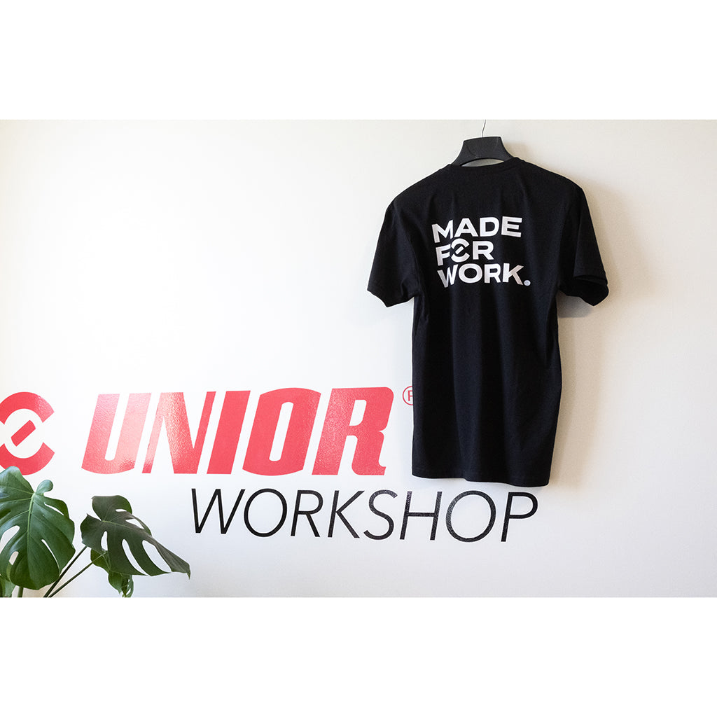 A small, tasteful Unior Bike Tools logo adorns the left chest while a larger, impactful Made For Work is placed upon the back to let everyone know what you stand for.